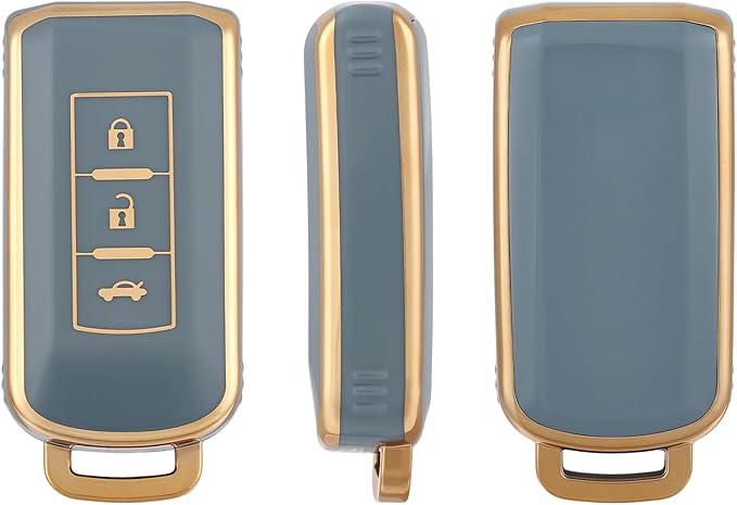キーシェル TPU 車のキーカバー キーケース 互換 ジャスパー 新型 アウトランダー トライトン キーカバー 三菱 Outlander 新型三菱 互換スマートキーケース,3ボタン,ブルーゴールド