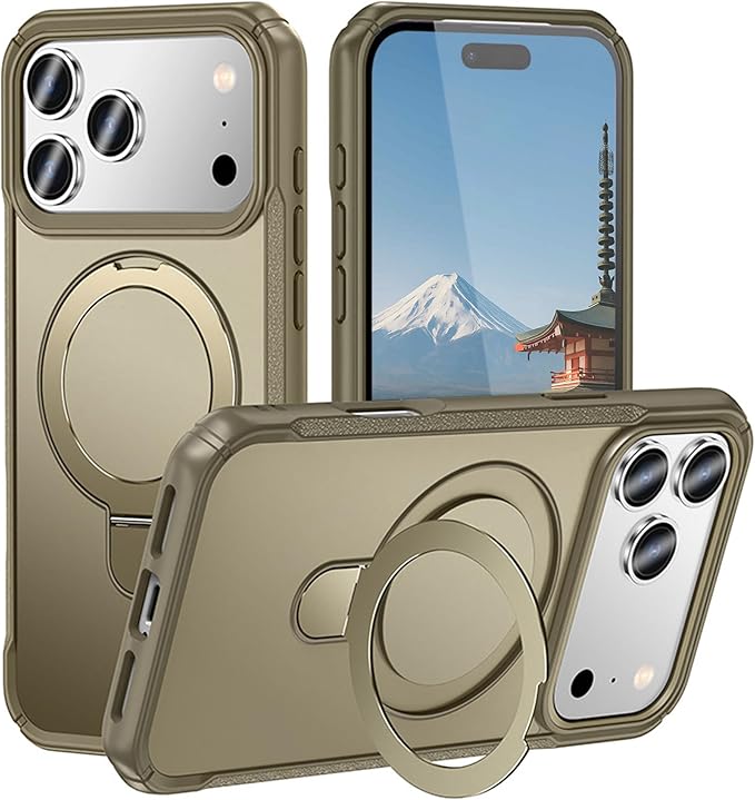 iPhone 17 Pro Max 用 ケース MagSafe対応 360 回転スタンド リング付き マットカラー 米軍規格 耐衝撃 カメラ保護 軽量 ストラップホール付き (クリア)