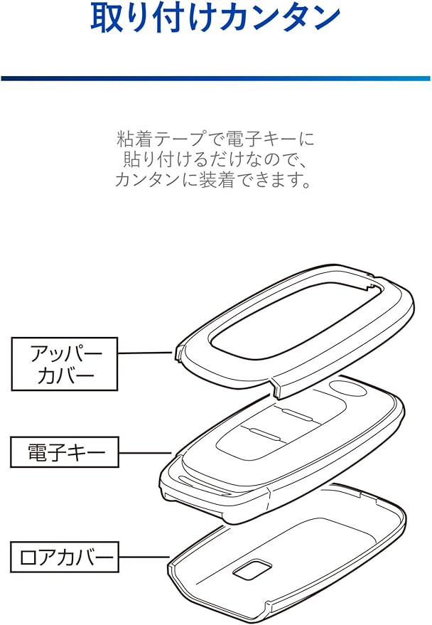 本製品は、粘着テープで電子キーに貼り付けるだけなので、カンタンに装着できます。