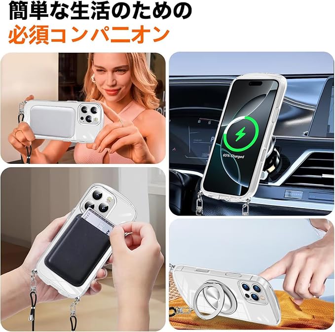 【互換性モデル】iPhone 17 Pro Max 適用 ケース。※ご注意:ご注文する前に、必ずお買い求めの機種とカラーを確認してください。 【MagSafe ワイヤレス充電・スピーディー且つ自由な充電体験】iPhone 17 Pro Max 用ケースには高度な MagSafe 磁気吸着ワイヤレス充電機能が搭載され、利便性の高い充電体験を新たな次元に引き上げました。正確な磁気吸着で位置決めが完了し、「貼り付けるだけで充電開始」となり、煩わしい差し込み操作を廃し、充電プロセスをスムーズに実現します。さらに高性能ワイヤレス充電技術により、安定的かつスピーディーな給電を確保しており、日常的な充電補給から緊急時の持続稼働まで幅広いニーズに柔軟に対応可能です。自宅でのゆったりとした時間、オフィスでの休憩時間、それに旅先での移動中など、あらゆる場面で MagSafe ワイヤレス充電機能がシームレスに適応し、途切れることのない電力サポートを提供し、テクノロジーがもたらす快適さと効率を存分に楽しんでください。 【全面保護】優れた保護性能,耐久性に優れた、傷がつきにくい,衝撃吸収性の高いTPU素材,衝撃やキズ、埃などからしっかりとスマホの背面を守ります。で落下衝撃から本体をしっかりと守ってくれます。フチをわずかに高く設計することで、日常生活の消耗に耐えしっかり保護できる、スマホへの傷つけを防止します。スマホを落としてしまっても衝撃を最小限に抑えるケース。専用にオリジナル設計しているためぴったりとフィットし、保護性能には欠かせないポイントとなっています。 【長さ調整可能 & ストラップの脱着が1秒で可能】調節可能なストラップにより、サイド、またはフロントに持ち運べるときに完璧にあなたの隣に掛けることができます。 このアクセサリーはファッションだけでなく、通常のストラップよりも快適で実用的です。それらは非常に耐性があり、湿気を吸収せず、無臭で乾燥しています。 それはあなたの手に自由を与えます。 ネックストラップはお好みの長さに調節できます。ストラップはいつでも取り外して身につけることができます、好きなように着こなす。