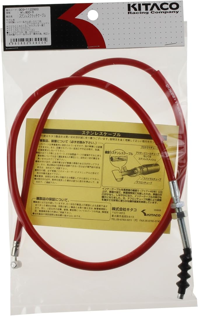 キタコ(KITACO) クラッチケーブル(レバー&ホルダー用/960mm) エイプ50/エイプ100 レッド 909-1122900