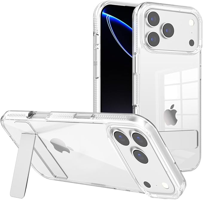 【極限透明感・機能スタンド】YUYIB スマホケース 対応 iPhone17 Pro Max ケース クリア スタンド機能 (メタルキック 3wayスタンドモード) 衝撃吸収 黄変防止/擦り傷防止 耐久性 薄型 軽量 対応 アイホン17 プロマックスカバー (クリア)