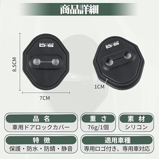 【高級感溢れ 専用ロゴ付き】このカードアストライカーは、深みのあるブラックカラーとシリコン素材のマットな質感が融合し、高級感のあるビジュアルを演出しています。車のドアを開けたり閉めたりするたびに、視界に現れるドアロックカバーが、愛車に微かな輝きを与えます。専用ロゴデザインによって、質感がさらに高まります。美しさと実用性を兼ね備えた便利なアイテムです。【適用車種】:デリカ D:5 CV系 など