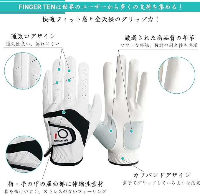 P2.強力グリップ:しっとりとした高級合成皮革と羊革で、強力なグリップ力を発揮。伸縮性のある素材により、幅広い動きが可能で、長時間のラウンド中の疲れを軽減します。
