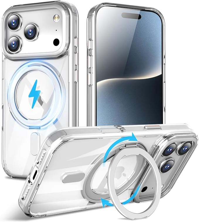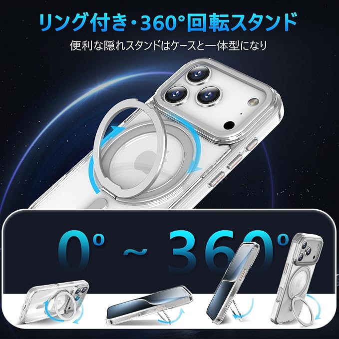 QUEASON【iPhone 17ProMax 用 MagSafe対応 ケース】360 回転スタンド ワイヤレス充電対応 いphone17promax 用 ケース リング付き 米軍MIL規格 iphone 17 pro max 用 スマホケース magsafe 超強磁力 落下防止 iphone17プロマックス 用 スマホケース 耐衝撃 半透明 防指紋(クリア)