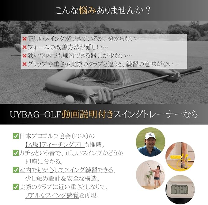 【専門家のお墨付き】 日本プロゴルフ協会『A級』ティーチングプロ、三富大輔氏も推薦。 正しいスイングはもちろん、飛距離アップしたい方にも◎
