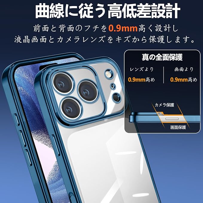 ケース 用の iPhone 17 Pro Max クリア カバー 耐衝撃 薄型 米軍MIL規格 tpu カバー 人気(ブルー)