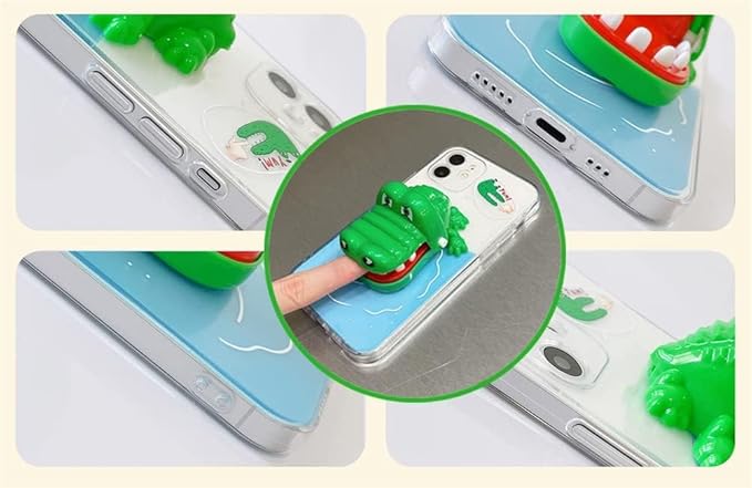 UnnFiko for iPhone 15 Pro Max ケース おもしろ ワニ 動物 押すと動く 3D立体的 かわいい ソフト 透明 クリア アイフォン 15 Pro Maxケース スタンド可能 動物柄 スリム 軽量 保護ケース (iPhone 15 Pro Max, 透明)