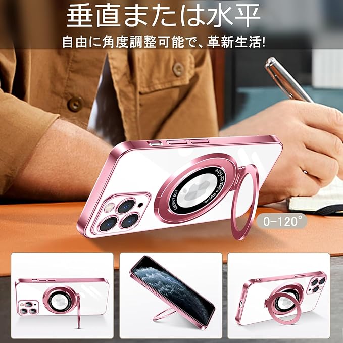 iPhone 11 Pro Max 用 ケース クリア MagSafe対応 アイフォン11ProMax カバー 縦横両対応 多機能一体スタンド 透明 TPU 耐衝撃 薄型 軽量 レンズ保護 Qi ワイヤレス充電対応 iphone11pro max スマホケース(ローズゴールド)