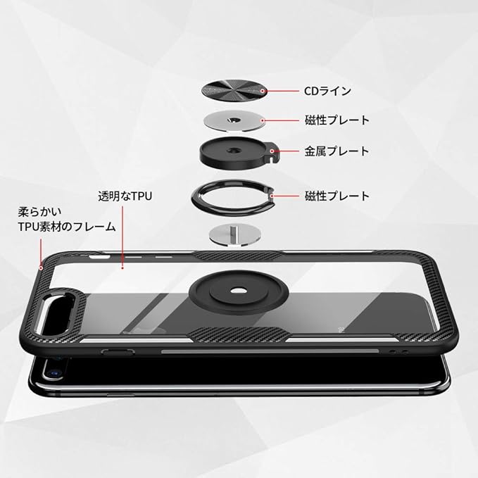 【マグネット式の車載ホルダー】携帯ケースと指リングは一体型な設計で複雑な取り付けがなく、落下しにくく、擦り傷、ぶつかり合う、衝撃からスマートフォンを保護することができ、手に持って持ち運ぶことも安全&便利です。リング内側部分にメタルプレートを採用、マグネット式車載スマホマウントホルダー に対応で、複雑なインストール手順が必要がなく直接吸着させることができます。