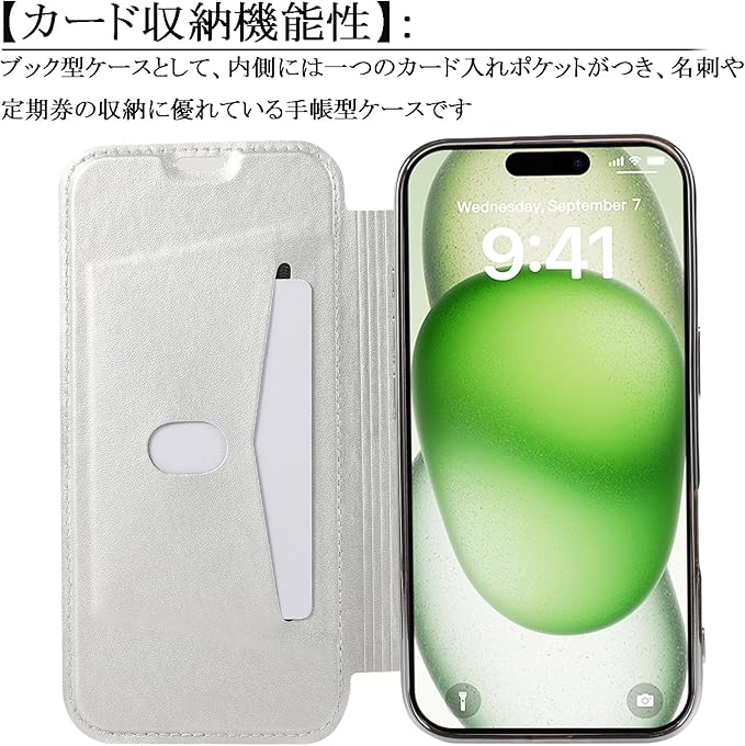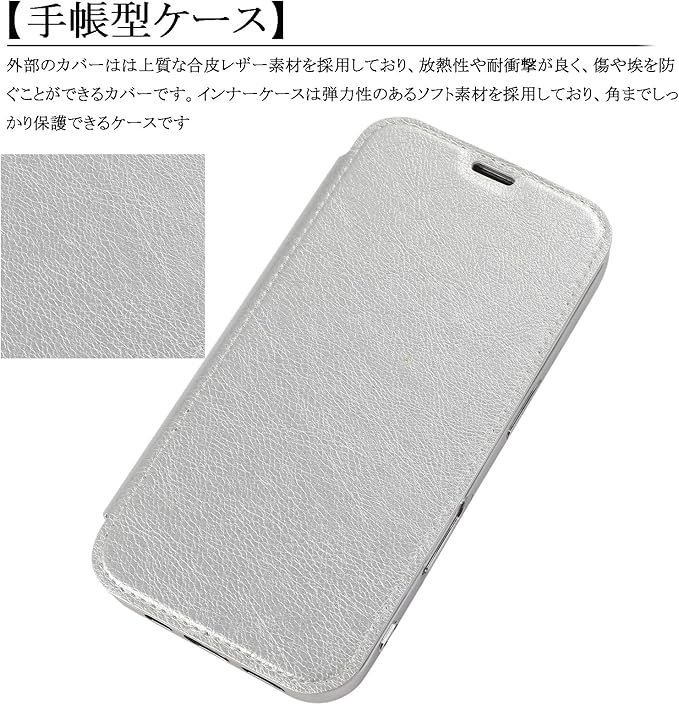 スマホケース 対応 iPhone 17 pro Max ケース 手帳型 背面 クリア 透明 高級なPUレザー+TPU 衝撃吸収 軽量薄型 アイフォン17 プロマックス 携帯カバー (シルバー, iPhone17 Pro Max)