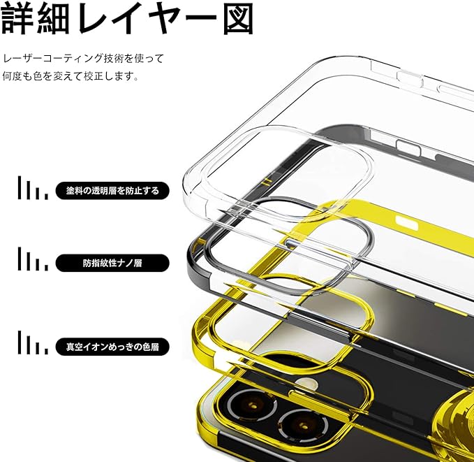 iPhone 13 Pro Max 用 ケース リング付き クリア 耐衝撃 スタンド機能 透明 TPU 車載ホルダー対応 落下防止 防塵 薄型 軽量 一体型 変形防止 全面保護カバー アイフォン用 ケース 金 W-YXZH-35-06