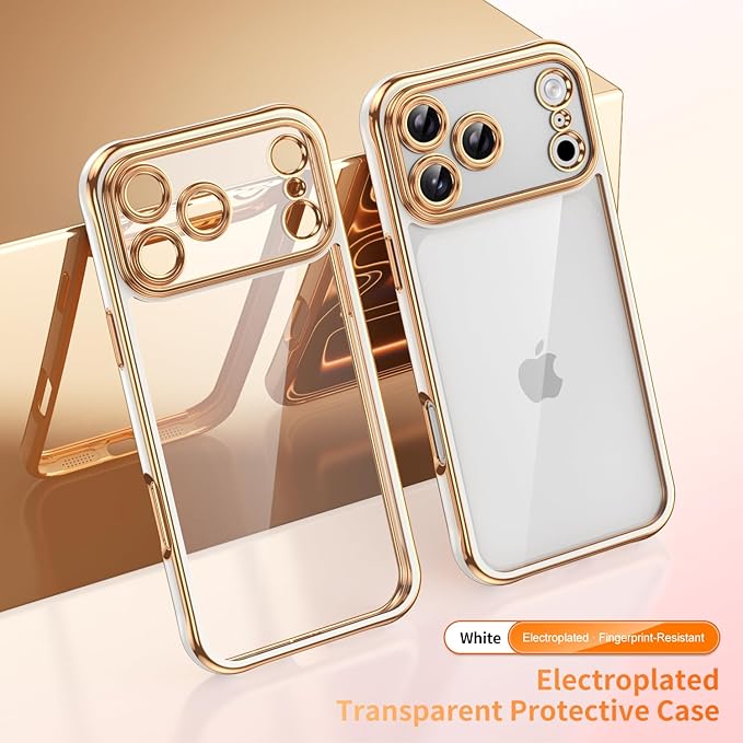 ZTOFERA for iPhone 17 Pro Max ケース、クリスタルクリアアクリルバック、ソフトメッキエッジ、取り外し可能な電話レンズ、スリム透明バンパーケース for iPhone 17 Pro Max ホワイト
