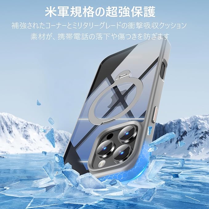 【耐衝撃性抜群!四隅のエアバッグ全面保護!】phone16promax ケースは耐摩耗性が強いPC素材、耐衝撃性に優れたTPU素材を使用しており、米軍MIL規格に準拠した耐衝撃性を備えており、スマホを万全に保護します。ケースは、四隅のAir-Shockと三重層構造で衝撃を完全吸収し、縁高設計で画面とカメラをしっかり保護し、日常のあらゆる衝撃からスマホを守ります、落下の心配なし!