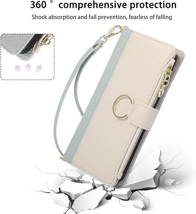 【上質な素材】ケースは高品質のPUと柔らかいTPU素材を採用し、360 全方位保護、快適な手触り、優れた放熱性と衝撃吸収性、耐久性と保護性を両立しています。繊細なステッチ、手触りと質感を兼ね備えたゴールドのメタルジッパー、高品質のメタルマグネットクラスプ、開閉が簡単、豪華でシックなデザイン、あなたのファッションセンスを高めます。