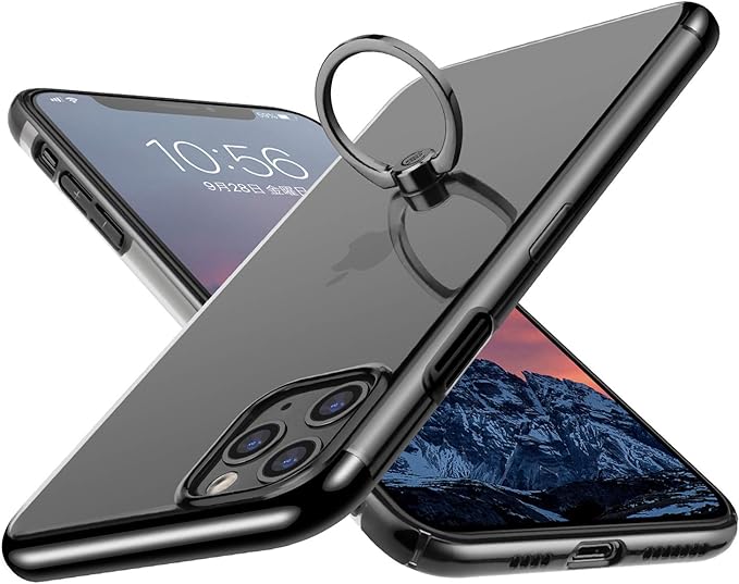 E Segoi iPhone 11 Pro Max ケース リング付き メッキ加工 スタンド機能 透明PC 落下防止 おしゃれ 軽量 薄型 アイフォン11ProMaxケース 一体型カバー 6.5インチ (iPhone 11 Pro Max, ブラック)