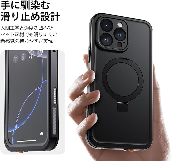 【スタンド機能・MagSafe対応】便利な隠れスタンドはケースと一体型になり、絶妙なデザインで携帯を自由に多角度を調節でき、力よくスマホを支えて、映像や読書などに楽しめることができます。強力なN52マグネットを搭載しており、マグセーフ充電器やその他様々なマグセーフマグネットアクセサリーをしっかりと保持します。また、急速充電可能です、マグセーフアクセサリーとの完全な互換性があり、安心してお使いいただけます。