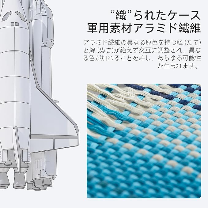 【保護性能を高める強靭素材】100%精選の600Dアラミド繊維から織られたアラミドクロスを真空成型して、スマホケースを成型させた後、コーティングやエッジの処理などをします。アラミド繊維でPITAKAスマホケースを仕上げるまでに、約40プロセスが必要となっています。航空宇宙グレードのアラミド繊維を使用しているため、優れた強靭性、耐久性、耐変色性を持ちます。 ※ご注意:Galaxy Z Fold7ケースは背面保護ケースのみで、前面カバーは付いておりません。