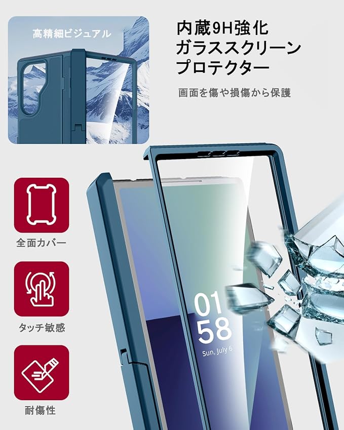 【9H強化ガラスフィルム内蔵】このスリムフォールド7ケースは高精細、高透明の強化ガラスフィルムが付いており、携帯電話の美しい画質に影響を与えません。特殊な飛散防止設計により、万一割れてしまった際にも飛散することなく、高い安全性を確保します。忙しい街中を急いで歩く際や、鍵でいっぱいのバッグにスマホを放り込む時、または日常の業務で使用する際にも、Fold7 保護ケースはコインやペンなどの尖った物体による傷から保護し、同時に完璧なクリアさと鮮やかな色合いを維持します。