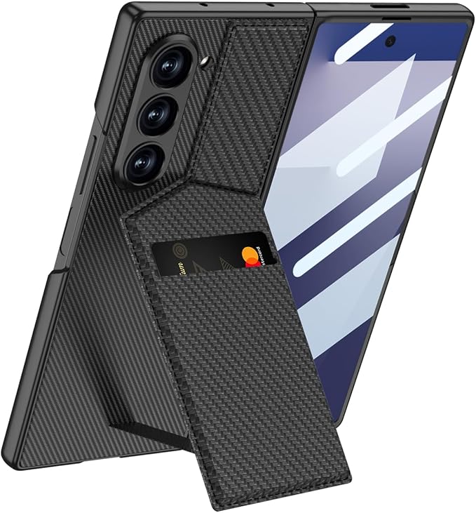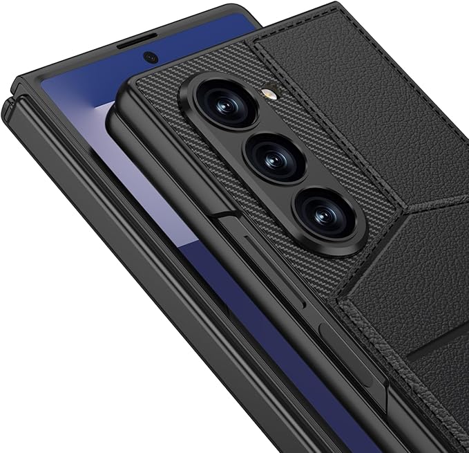 本製品はGalaxy Z Fold7の機構美を革新する次世代ビジネスプロテクション。立体カーボン調デザインと金属質感フレームが品格を演出し、磁気式多機能カードホルダーが利便性を進化。強化ガラス内蔵設計と微隆起保護リップが精密部品を全天候防御する一方、極薄複合構造が端末の本質的な美しさを引き出します。
