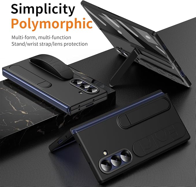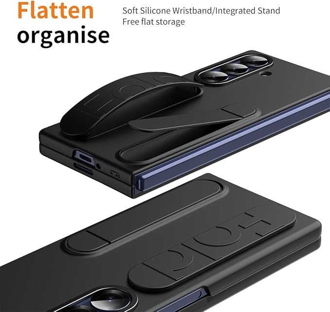 Galaxy Z Fold7専用 ケース 薄型 軽量 マットの表面 シリコンリストストラップ付 鋼化ガラス一体型 多機能スタンド&カメラ装甲 肌にやさしい感触 ワイヤレス充電対応 人気 反塵 レンズ保護 360 全面保護 指紋防止 精密フィット設計 個性 ユニーク 豪華 おしゃれ 二層構造 手帳型 滑り防止 - Beautycatcher - 黒