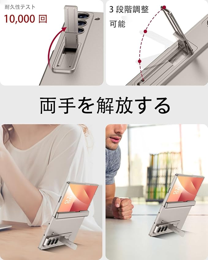 【マグネットで安定・使いやすさ】対応galaxy z フォールド7 ケース。強力なマグネットを搭載し、ヒンジ部分にしっかり吸着。外れにくく、開閉がスムーズで折りたたみ機能に影響を与えません。スタンド付きで角度調整が簡単で、さまざまなシーンで快適に使用できます。