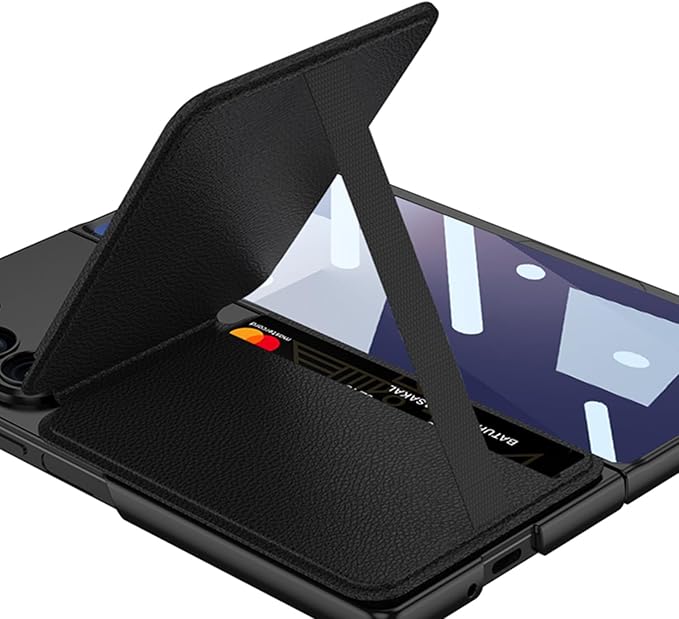 【多目的マグネットカードホルダー】【質感皮革素材】質感皮革製の磁気吸着式カードホルダーを付属。複数枚のカード収納が可能で、軽量化された携帯を実現。展開時は動画視聴用スタンドとして機能し、未使用時は完全フラット収納で携帯性を損ないません。必要に応じて簡単に着脱可能。
