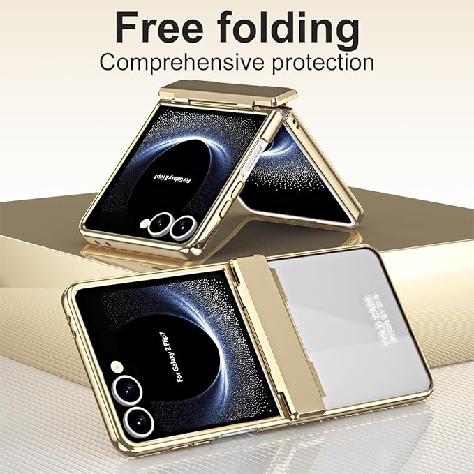 【Galaxy Z Flip7専用】手帳型ケース 透明デザイン 電鍍フレーム 鋼化ガラス一体型 360度防護 超薄軽量折りたたみ ワイヤレス充電対応 ヒンジ保護 カバー キラキラ おしゃれ 衝撃吸収 折り畳み 人気 滑り防止 面白い フリップ かわいい Beautycatcher - 金