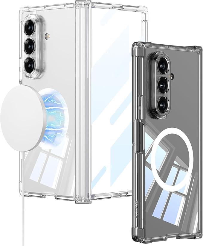 本製品はGalaxy Z Fold7専用設計の透明手帳型ケースです。高透過性PC素材の全包囲構造が360度防御を実現し、エアバッグ構造強化の四隅が衝撃吸収性能を向上。ヒンジ部の独立保護カバーが開閉動作を安定化、前面一体型ガラス層が外画面を常時保護します。超薄軽量設計で装着感を最小化し、磁気構造内蔵により全ワイヤレス充電器と互換性を確保。精密加工による隆起設計がカメラ保護を強化します。