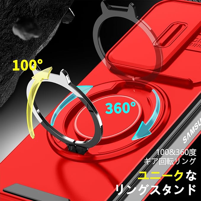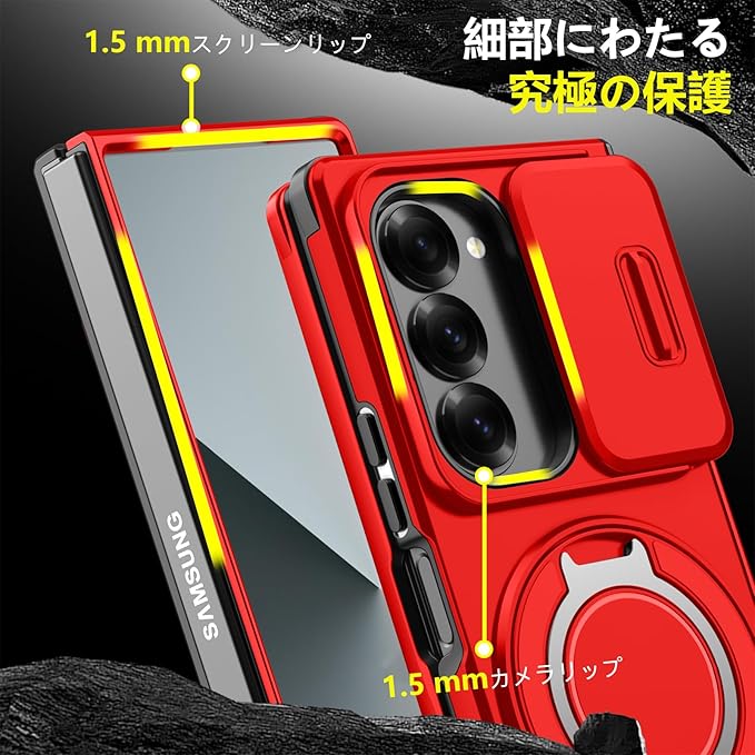 対応 Galaxy Z Fold6 用 ケース スタンド付き 耐衝撃 SC-55E カバー レンズ保護 スライドカメラカバー TPU+PC 軽量 滑り止め 落下保護 スタンド機能 車載ホルダー対応 ギャラクシー Z フォールド6 5G 携帯ケース 赤 R-LK-Fold6-07