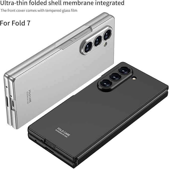 【Galaxy Z Fold7専用】手帳型ケース 鋼化ガラス一体型 超薄軽量折りたたみ ワイヤレス充電対応 レンズ保護 カバー マットの表面 360度防護 指紋防止 折り畳み スマホ 人気 面白い おしゃれ 携帯電話 落下防止 耐衝撃 Beautycatcher - チタン灰