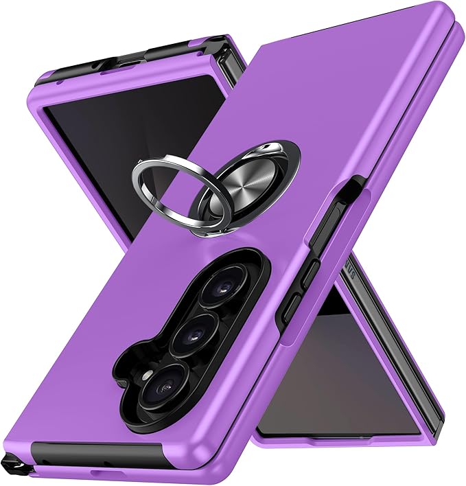 Galaxy Z Fold7 用 ケース リング付き 耐衝撃 内蔵スタンド付き 衝撃吸収 tpu 薄型 擦り傷防止 シリコン スタンド機能 車載ホルダー対応 二重構造 PC バンパー ギャラクシー Z フォールド7 5G 用 スマホケース 全面保護 360 回転 おしゃれ 人気 携帯カバー 紫 Q44-YSZH-Fold7-ZI