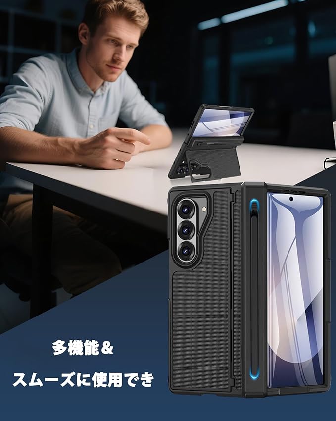 NINKI適応galaxy z fold7 ケース [SC-56F|SCG34] タッチペン付き ペン収納でき ヒンジ保護 スタンド機能 PCフレーム 擦り傷防止 折り畳み式 男性向け 人気 液晶フィルム付き 落下保護 精密にアクセス 耐衝撃 純正 ギャラクシーz fold7 ケース (ブラック)