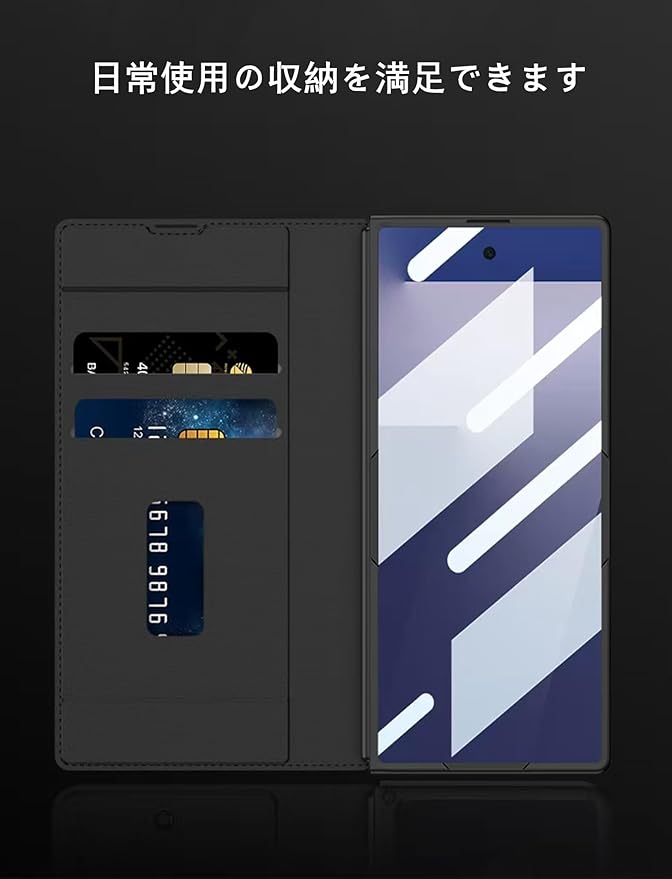 適用galaxy Z Fold7 ケース 純正 ヒンジ保護 人気 Sペン収納 (前面ガラスフィルム 1枚き付) (ブラック)