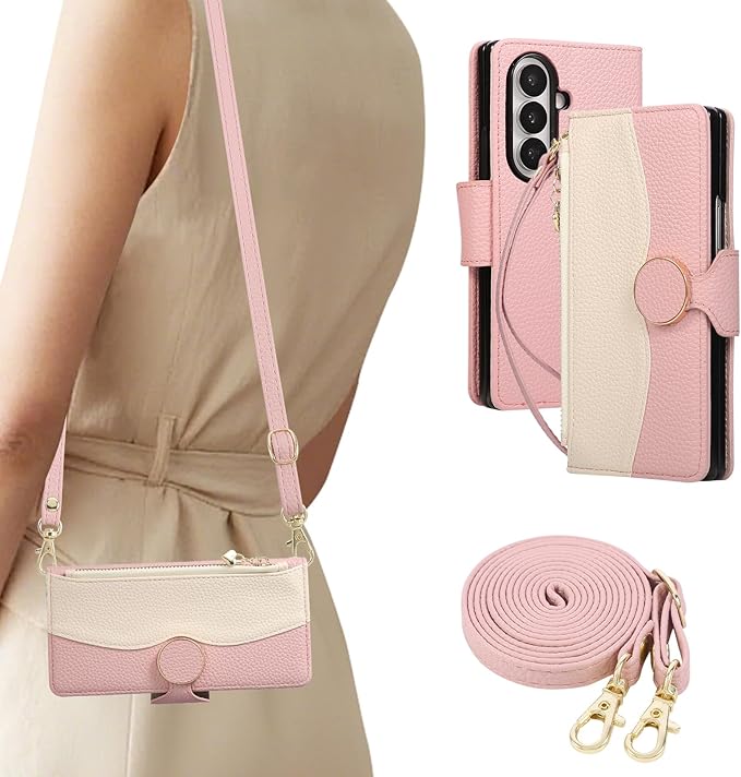 用のGalaxy Z Fold7 ケース 手帳型 ギャラクシーzフォールド7 スマホケース ショルダー SC-56F SCG34 用 ケース手帳型 ギャラクシーzフォールド7 携帯カバー 8インチ対応 Galaxy Z Fold7 手帳型ケース 財布型 小銭入れ マグネット式 カード収納 スタンド機能 全面保護 ファスナー型 手首/肩掛けストラップ付 2色パッチワーク (ピンク)