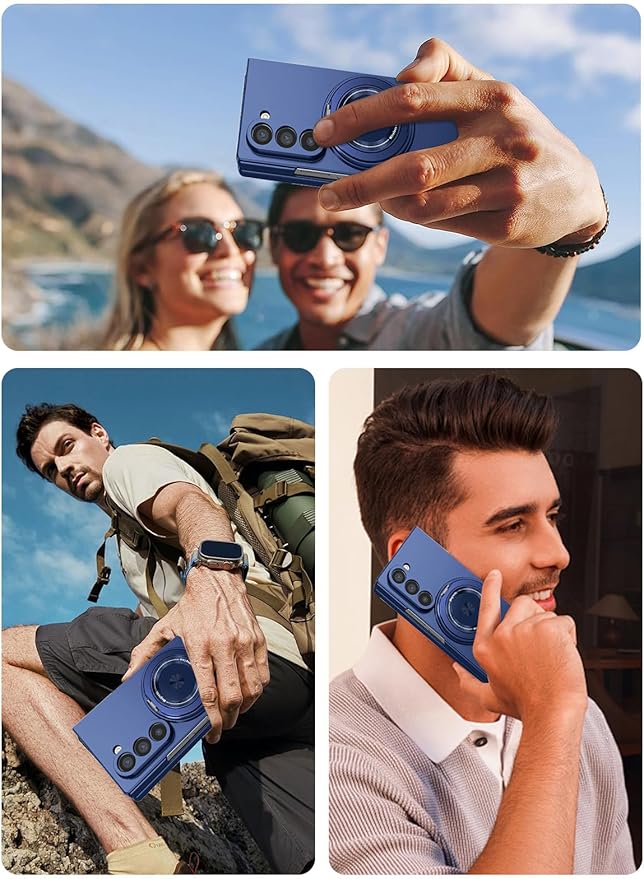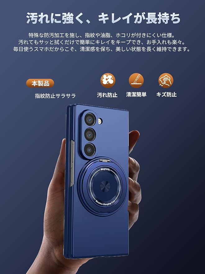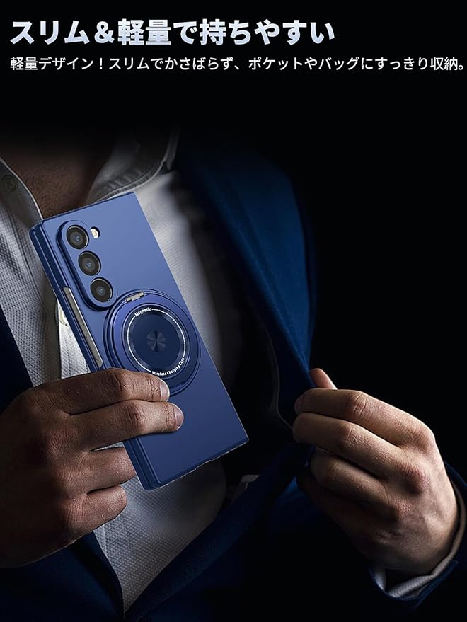Samsung Galaxy Z Fold7 用 ケース 薄型 スマホケース さらさら 手触り SpinoArmor 指紋防止 擦り傷防止 耐衝撃カバー 滑り止め 傷防止 携帯便利 Samsung Galaxy Z Fold7 対応(ブルー)