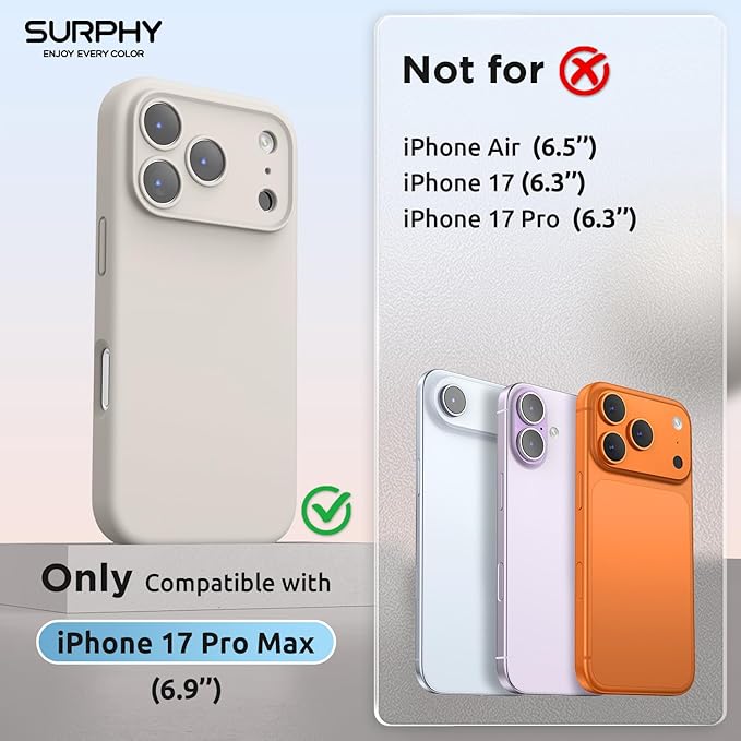 SURPHY iPhone 17 Pro Max 用ケース シリコン MagSafe対応,6.9インチ対応(2025) スマホケース iPhone 17 Pro Max(カメラの全面保護) マグネット搭載 アイフォン17 プロ マックス用ソフトカバー(ストーングレー)