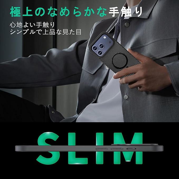 【米軍MIL規格・Magsafe対応】ONES iPhone 17 Pro Max 用 ケース カーボン調 薄型 耐衝撃 画面 レンズ保護 碳素繊維テクスチャ 滑り止め 防汚 Qi充電 軽量 高磁力マグセーフ対応 カバー