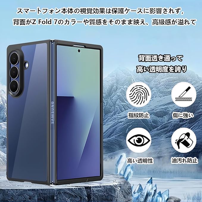 【高透明度】 Z Fold7カバー透き通って高い透明度を誇り、ミニマリストのウルトラクリアスタイルで,背面がZ Fold 7のカラーや質感をそのまま映え、高級感が溢れて、すごくかっこよくてこのクリア感にいつまでも見惚れてしまいます