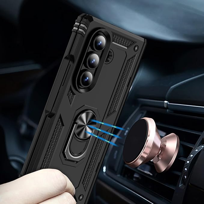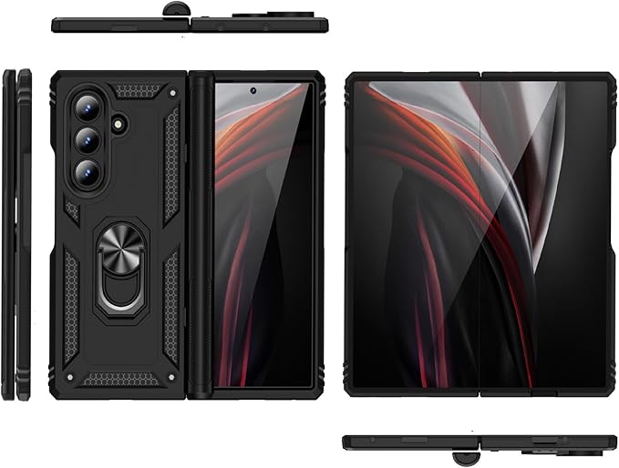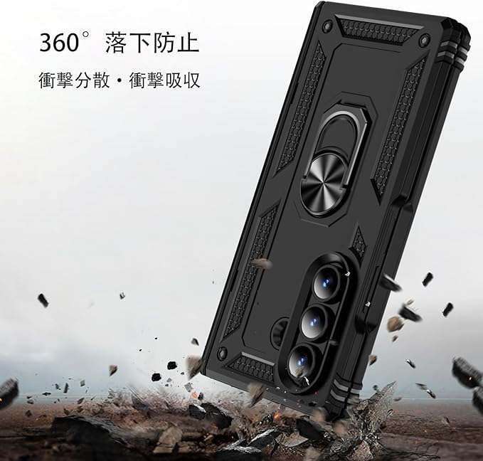 EDu Galaxy Z Fold7 ケース ギャラクシーゼットフォールド7ケース リング付き スタンド機能 ヒンジ保護 耐衝撃 純正 傷防止 レンズ保護 落下防止 ブラック