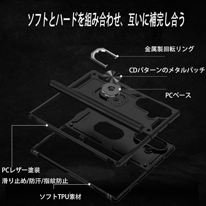 Galaxy Z Fold6ケーススタンド機能対応&リング付き:Fold6ケースを付けでテーブルに置くと、スタンドに機能対応、まだリング付きで一指式リング、片手で携帯を操作できまして、使用が便利です。