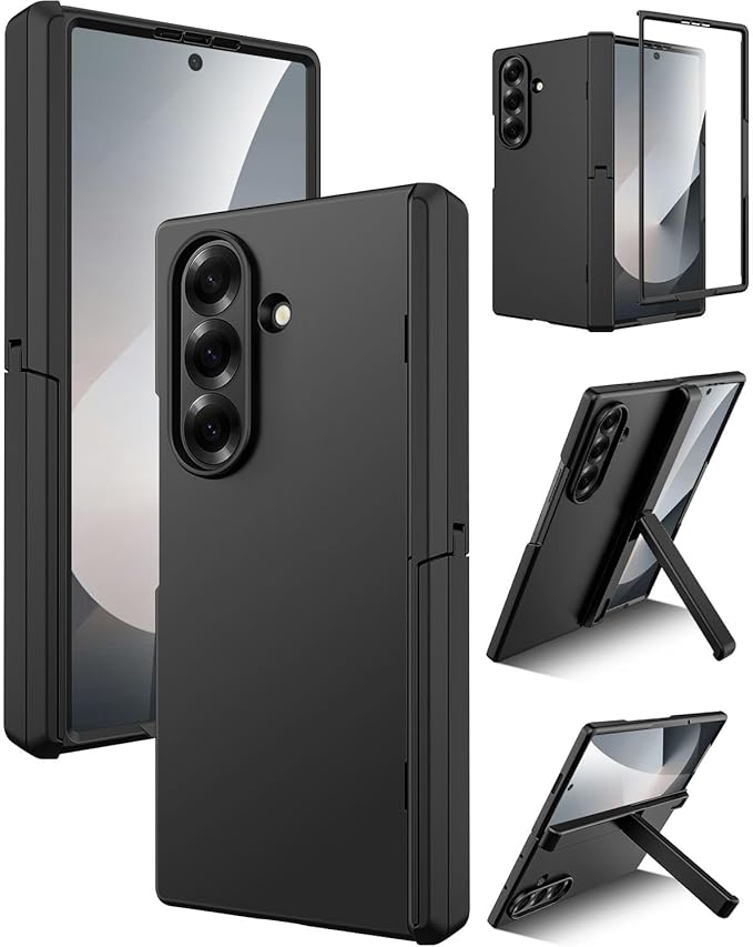Miimall 対応 Galaxy Z Fold 7 ケース フィルム一体型 スタンド機能 ヒンジ保護 耐衝撃 衝撃保護 防塵 滑り止め 全面保護 スリム Case ギャラクシー Zフォールド7 スマホカバー Z Fold 7 携帯ケース(ブラック)