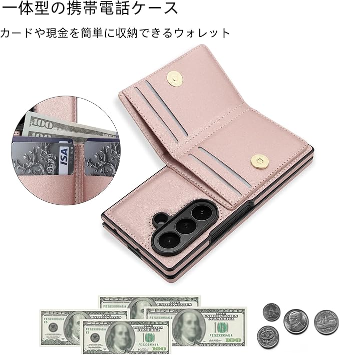 多機能:このギャラクシーZ Fold7 ケース 手帳型用ケースには、小銭入れ、ウィンドウカードホルダー、複数のカードスロット、スナップオンフラップが装備されており、重要なカードを完全に保護します。マグネット式の縦開きウォレットケースにはキックスタンド機能があり、特別なデザインです。背面のフラップを使用して、キックスタンドとして水平に置くことができます