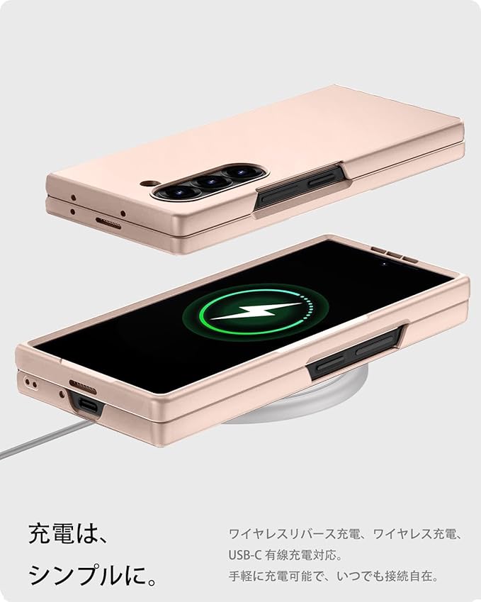 【対応機種】Galaxy Z Fold 7 専用に開発されたケースで、ワイヤレス充電機能を完全サポート。ケースを装着したままでも、充電端子の差し込み、イヤホンの接続、側面ボタンの操作がスムーズに行え、日常の使い勝手を損ないません。