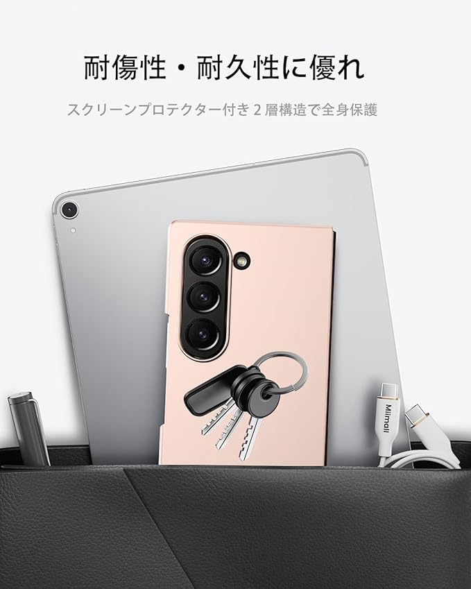 【超薄軽量】Z Fold7 に最適化されたスリムケースは、装着しても存在感を感じさせないほどの優れたグリップ性を持ち、スタイリッシュなデザインを実現しています。まるでケースをつけていない裸の状態のような軽さが特徴で、ポケットに入れてもかさばらず、持ち運びが非常に便利です。