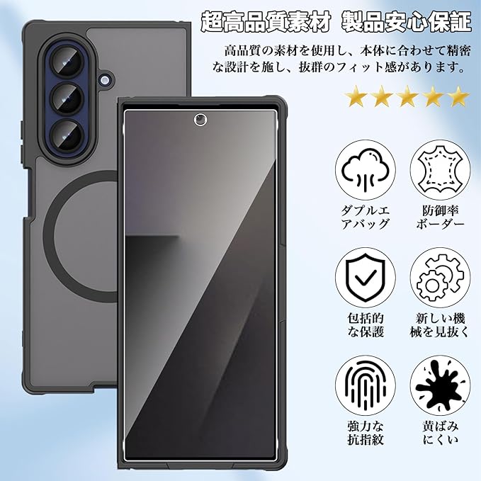 【1個+2枚セット】For Galaxy Z Fold7 ケース(1個 MagSafe対応)+ガラスフィルム(2枚) Greerass 保護ケース ガラスフィルム付き MagSafe対応 薄型 超軽量 耐衝撃 擦り傷防止 指紋 汚れ防止 手触り良い 着脱簡単 (ブラック)