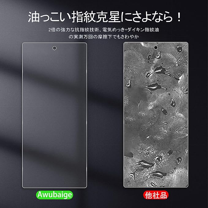 【二次硬化处理&9h硬度】は日本製AGCのガラス材料を採用し、一般的な熱強化処理を行った後に、二次硬化処理を行っています。1000回以上のひっかき傷テストと落下テストに無傷と、落下に対する耐性が高い。