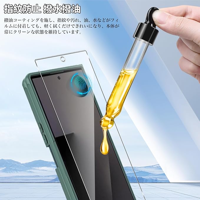 【汚れに強い】撥水・撥油加工が指紋や皮脂の付着を防ぎます。フィルムの表面には様々な特殊加工が施されており、油分、ほこり、指紋に強く、スマートフォンを常に清潔な状態に保ち、見た目の美しさや画面体験にも影響を与えません。頻繁にスマホを拭かないようにします。
