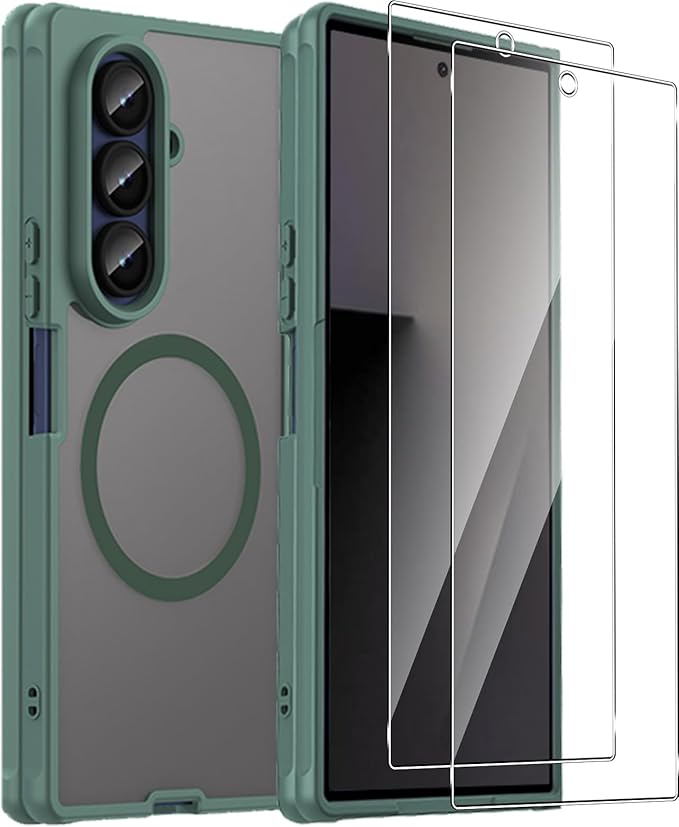 【1個+2枚セット】For Galaxy Z Fold7 ケース(1個・MagSafe対応)+ガラスフィルム(2枚) Greerass 保護ケース ガラスフィルム付き MagSafe対応 薄型 超軽量 耐衝撃 擦り傷防止 指紋・汚れ防止 手触り良い 着脱簡単 (グリーン)