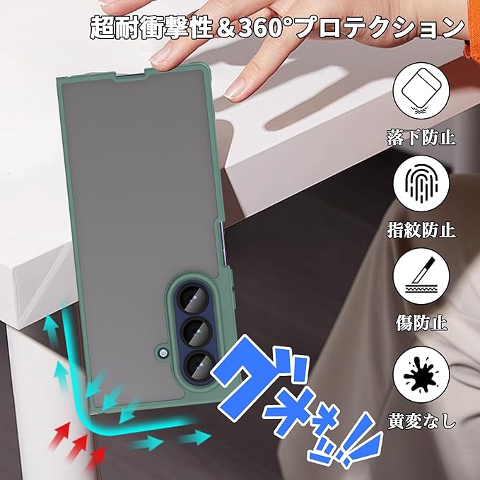 For Galaxy Z Fold7 ケース Mosasa カバー マット感 半透明 TPU+PC レンズ保護 薄型 指紋防止 落下防止 安心保護 軽量 全面保護カバー (グリーン)